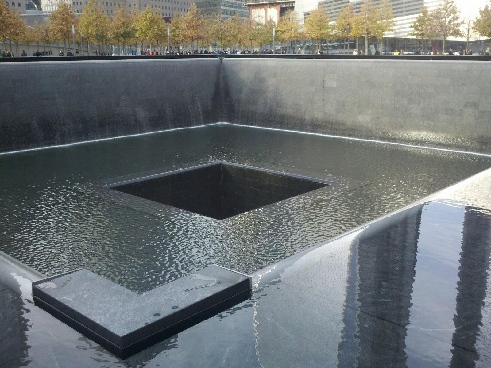- · World Trade Center Memorial – On a more somber note, we visited the WTC memorial, a very humbling experience. I don’t know anybody personally who was killed in the September 11th attacks, but the terrible things that happened become so much more real when you’re standing on Church Street. About 10 years ago at that exact spot, you would have been running for your life, getting covered with debris as the towers fell just a few blocks behind you. The memorial museum has videos and written personal accounts from people who lost family members on 9/11, a display of the helmets of firefighters who lost their lives that day, and the mementos that were left on the fencing around Ground Zero in the weeks/years that followed. There are now two enormous reflection pools in the exact footprint of where the twin towers once stood, bordered by plaques engraved with the name of every victim in that building. The memorial tower is not quite complete yet, but it is already a very impressive sight.